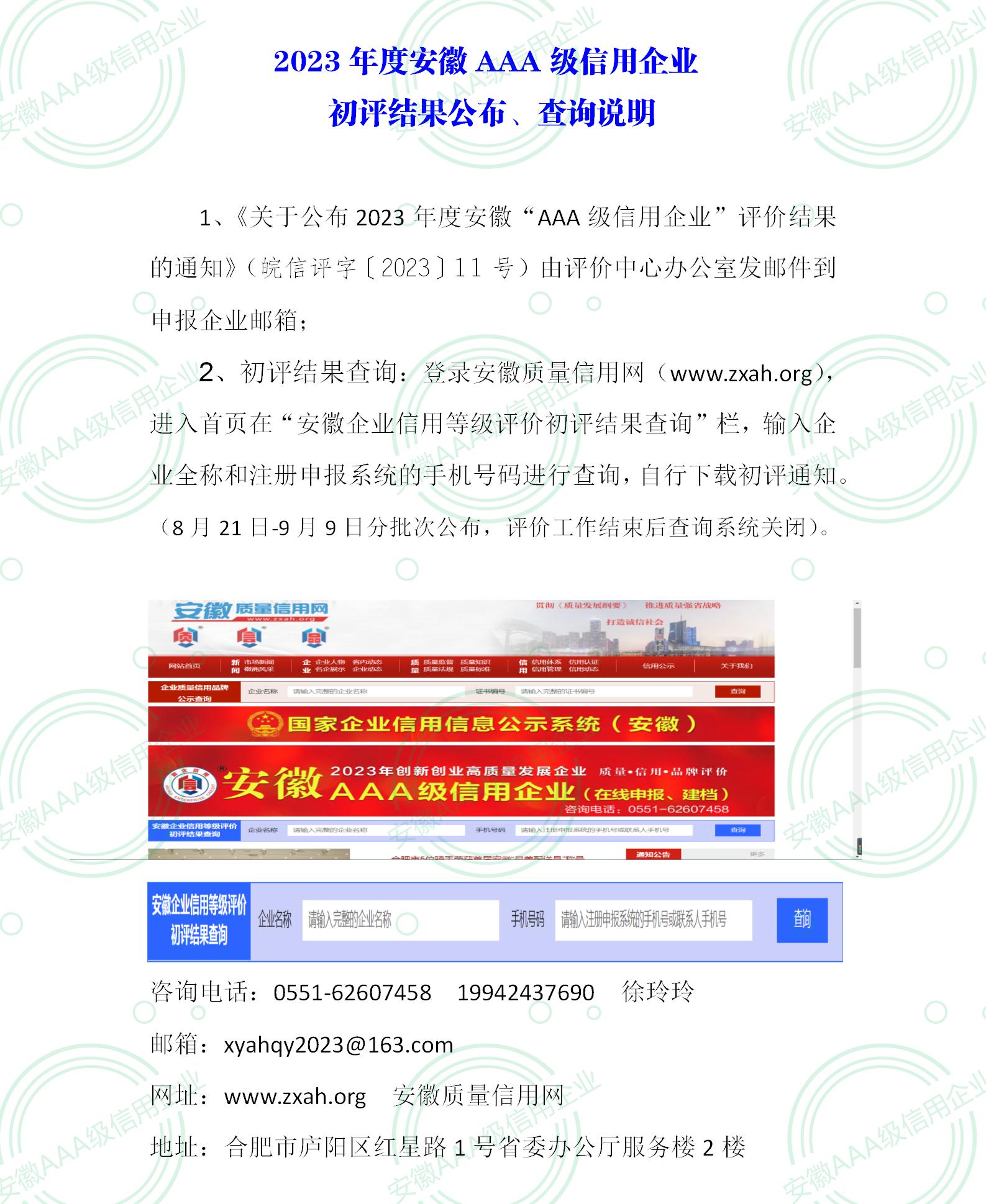 2023年度安徽aaa级信用企业 初评结果公布、查询说明-凯发pa旗舰下载